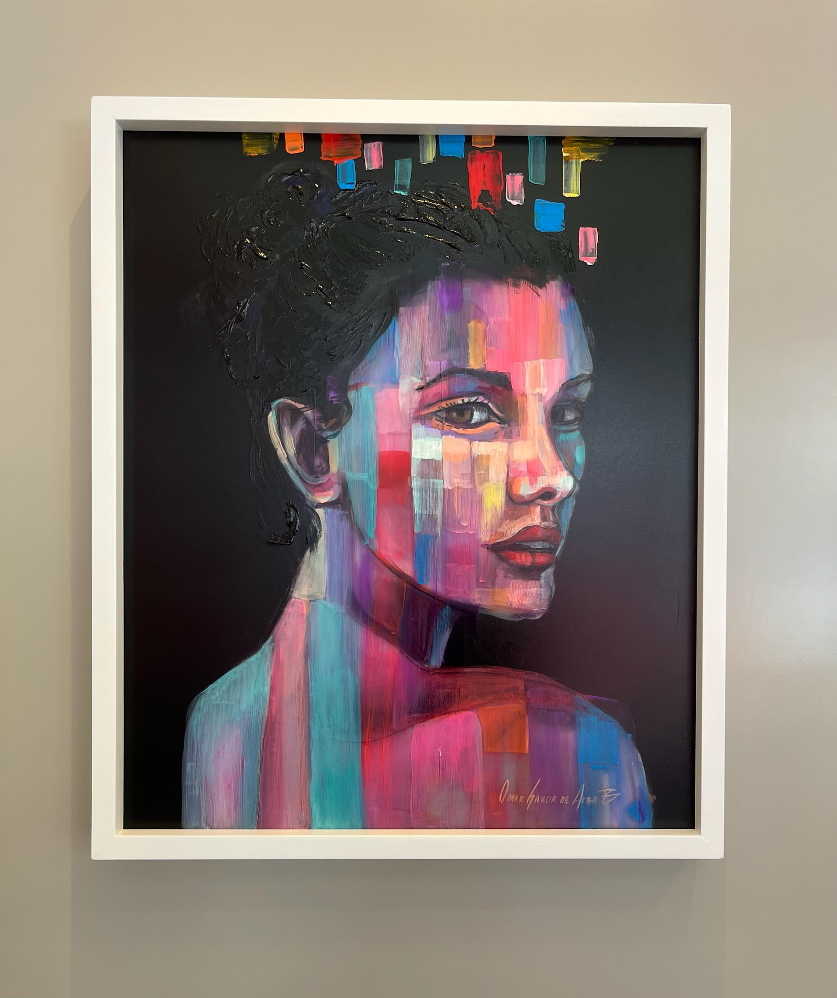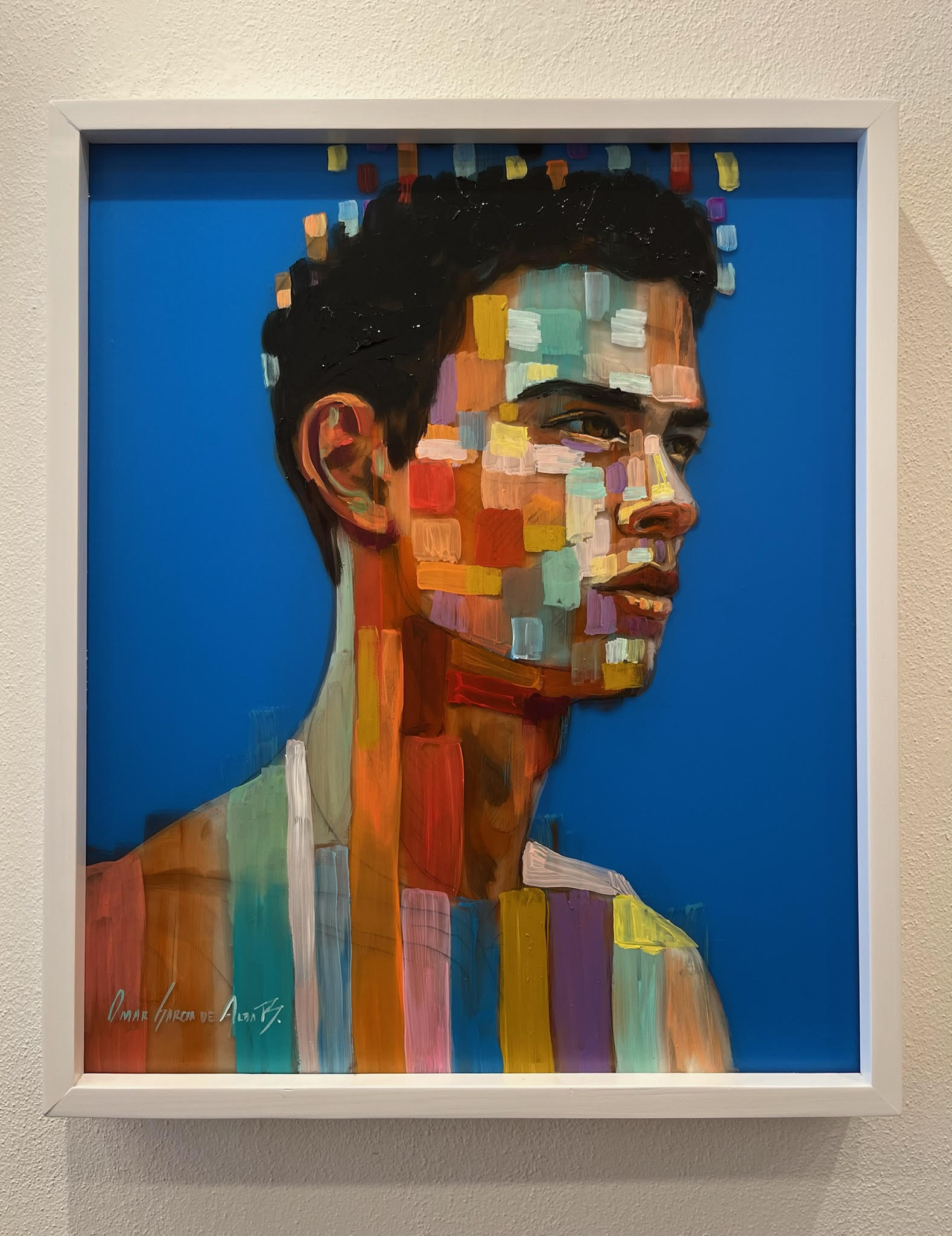 His strong lines, oftentimes giving us a pixelated effect, and thoughtful expressions are easily identifiable and move us beyond a simple glance. Omar studied painting at the University of Guadalajara and continues to work and raise a family in Guadalajara. Outside of Jalisco his work has been exhibited in South Korea and Chicago. A multi-disciplinary artist, working with sculpture, print and murals to name a few, he continues to push the bounds of fine art and whimsy.